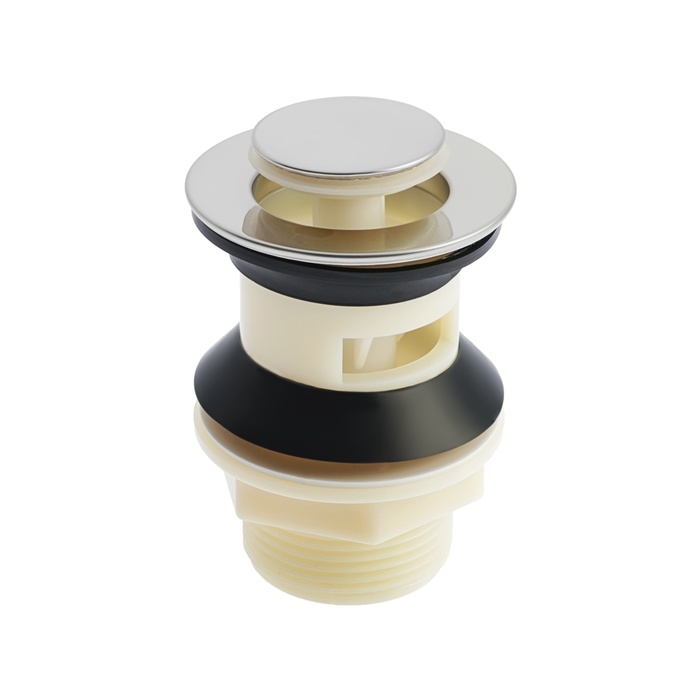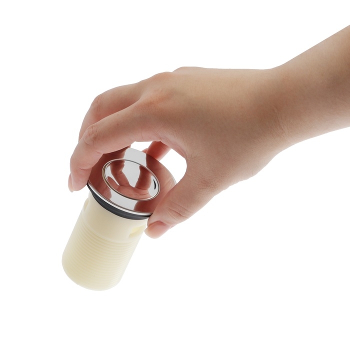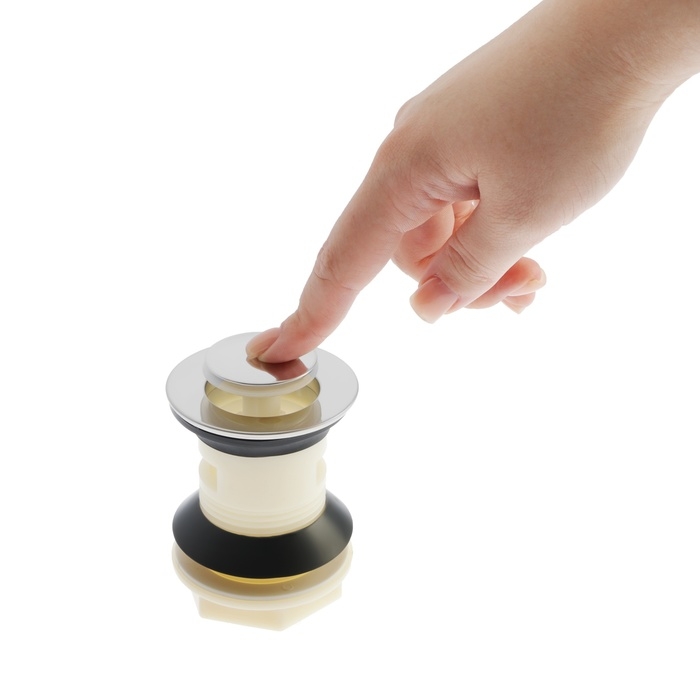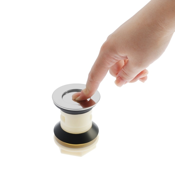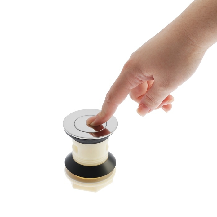Модель проста в эксплуатации, оснащена удобным запирающим механизмом, который перекрывает слив воды из раковины в трубу одним нажатием.