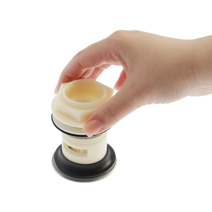 Клапан легко моется, а также препятствует распространению неприятных запахов из трубы.