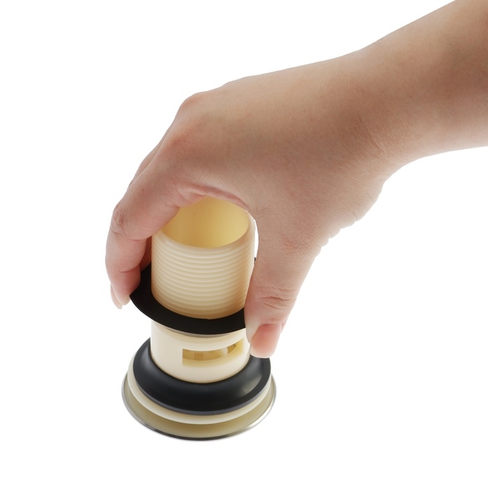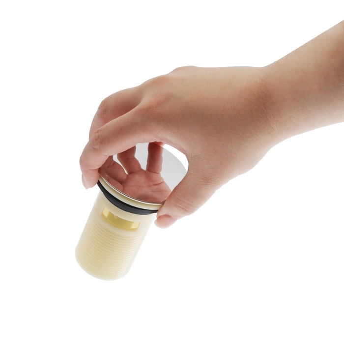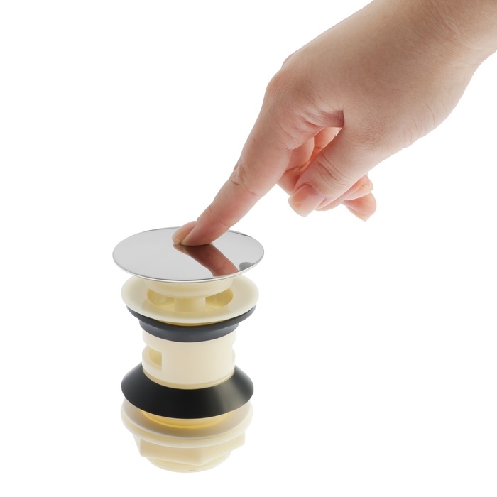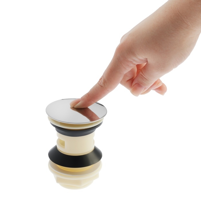Модель проста в эксплуатации, оснащена удобным запирающим механизмом, который перекрывает слив воды из раковины в трубу одним нажатием.