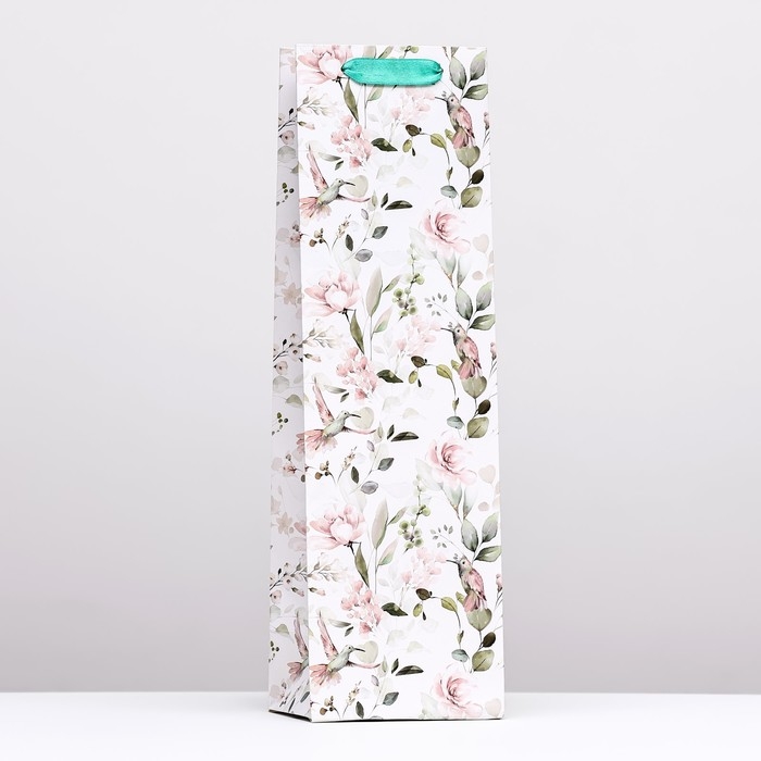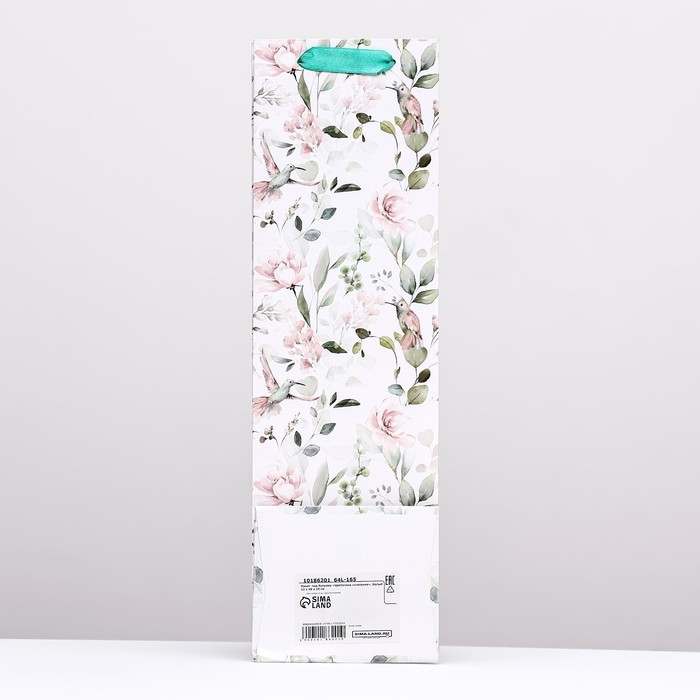 Пакет под бутылку «Цветочное сочетание», белый 12 x 40 x 10 см