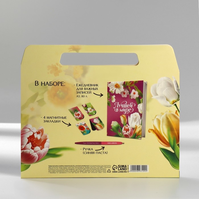 Подарочный набор в портфеле: ежедневник А5, магнитные закладки и ручка «8 марта»