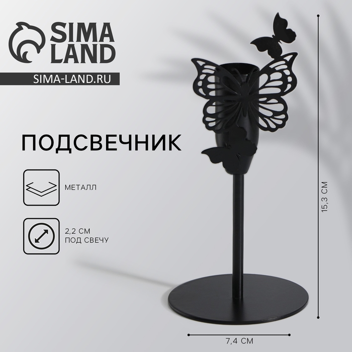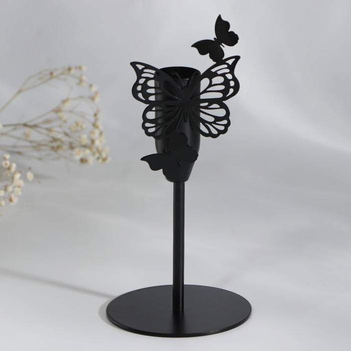 Подсвечник «Бабочки», черный, 7,4 х 15,3 см