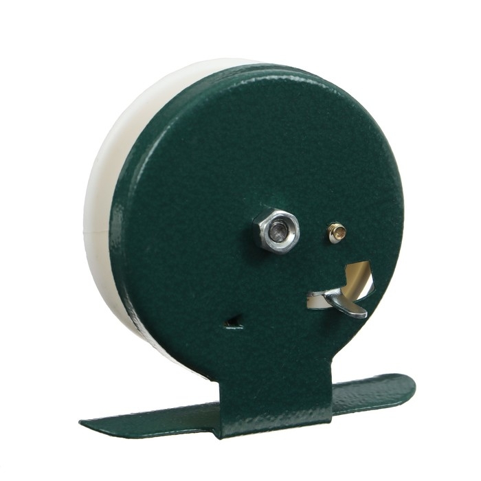 Катушка инерционная, металл пластик, диаметр 5 см, цвет белый-зелёный, 601