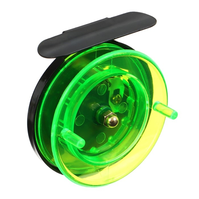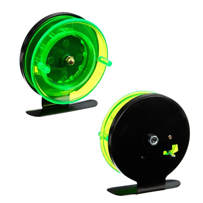 Катушка инерционная, металл пластик, диаметр 6.5 см, цвет черный-зеленый, 701