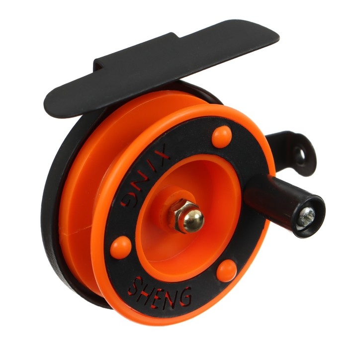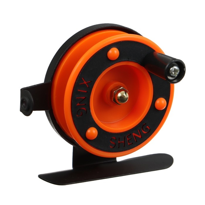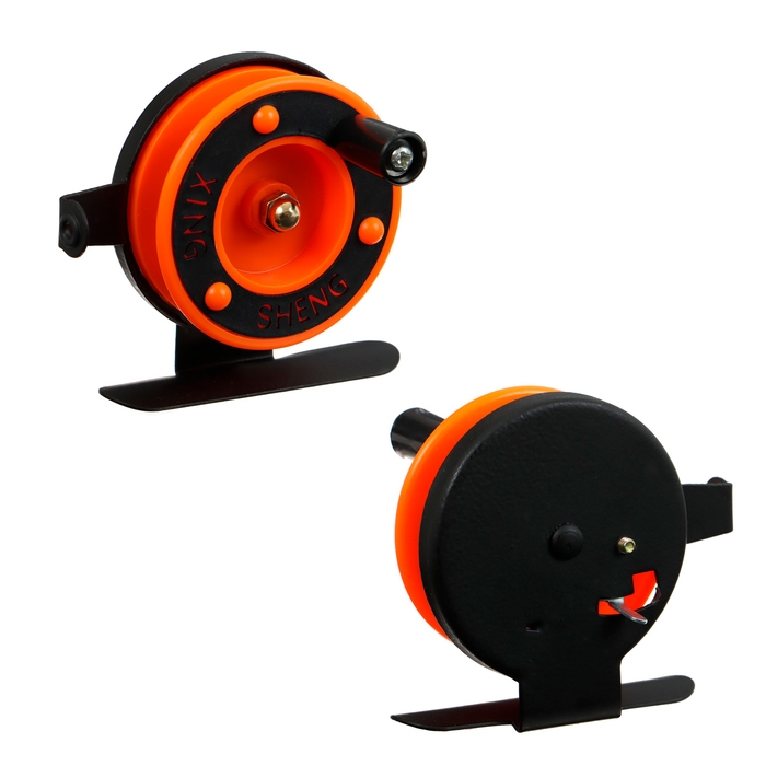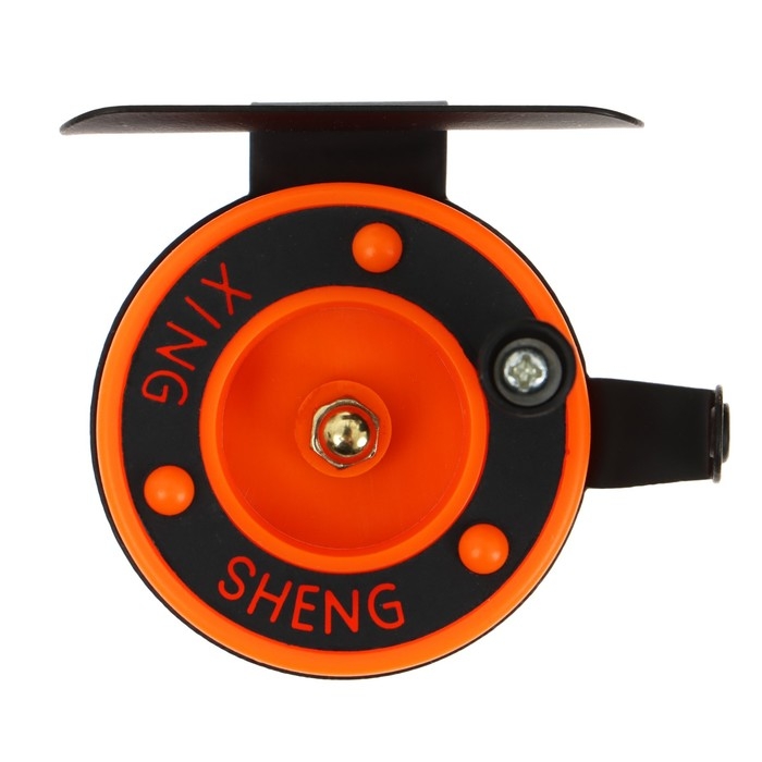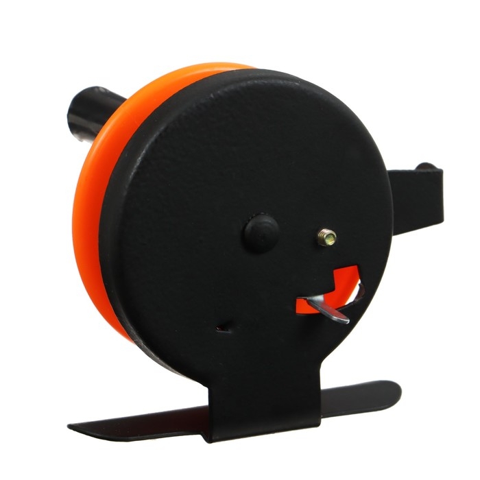 Катушка инерционная, металл пластик, диаметр 5 см, направляющая лески, черно-оранжевый, 601D