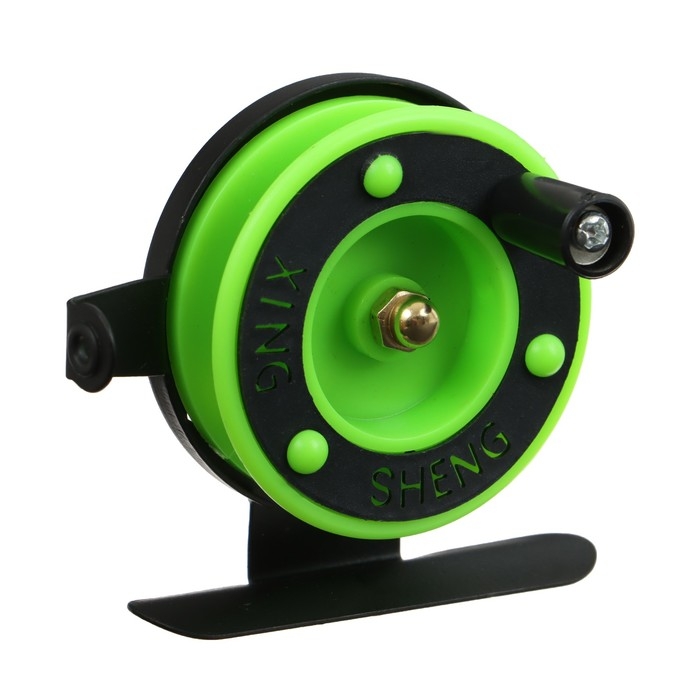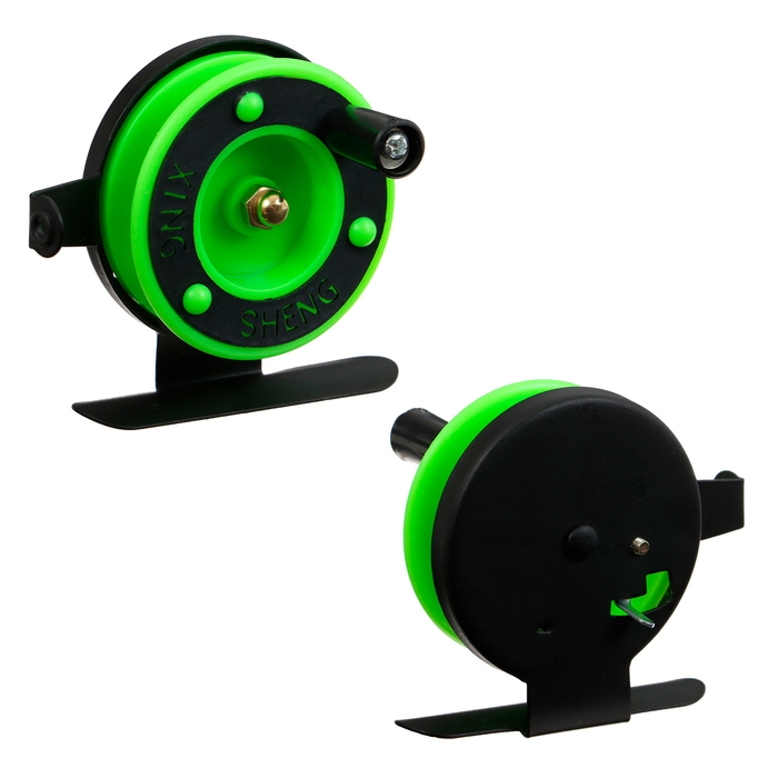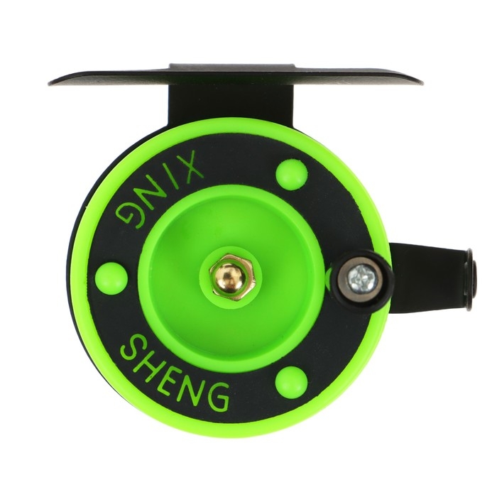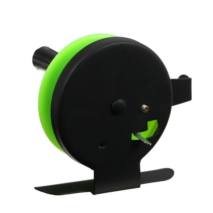 Катушка инерционная, металл пластик, диаметр 5 см, направляющая лески, черно-салатовый, 601D