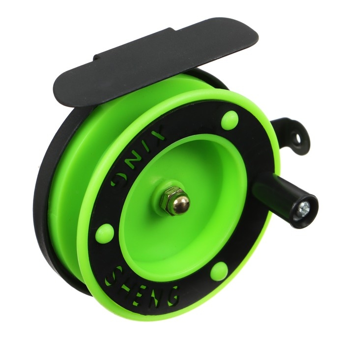 Катушка инерционная, металл пластик, диаметр 6.5 см, направляющая, черно-салатовый, 701D