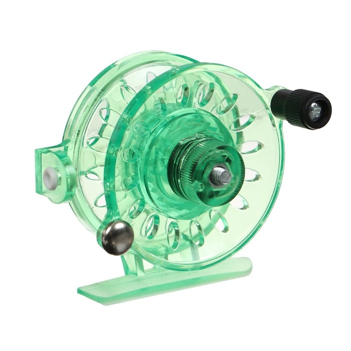 Катушка инерционная, пластик, диаметр 6 см, направляющая лески, цвет зеленый, 109