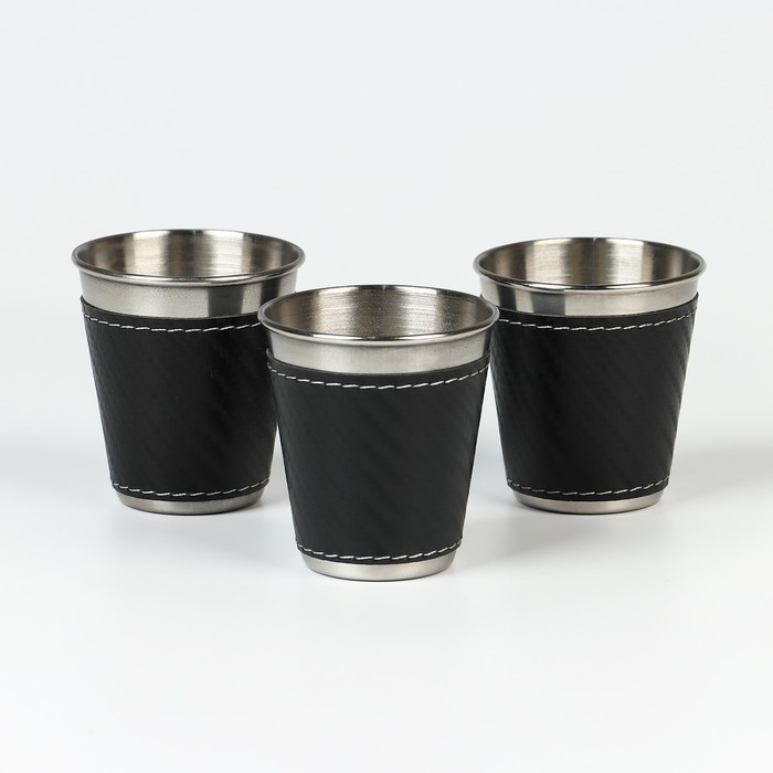 Набор стопок из 3 штук по 70 мл из пищевой нержавеющей стали в компактном чехле. Легкие и компактные, удобно брать с собой на отдых, рыбалку, охоту, природу или в путешествия.