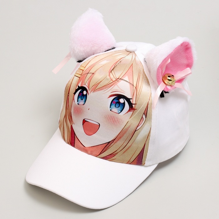 Кепка детская для девочки "Котик", аниме, с ушками, р-р 52-54, 5-7 лет