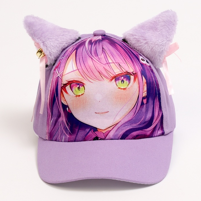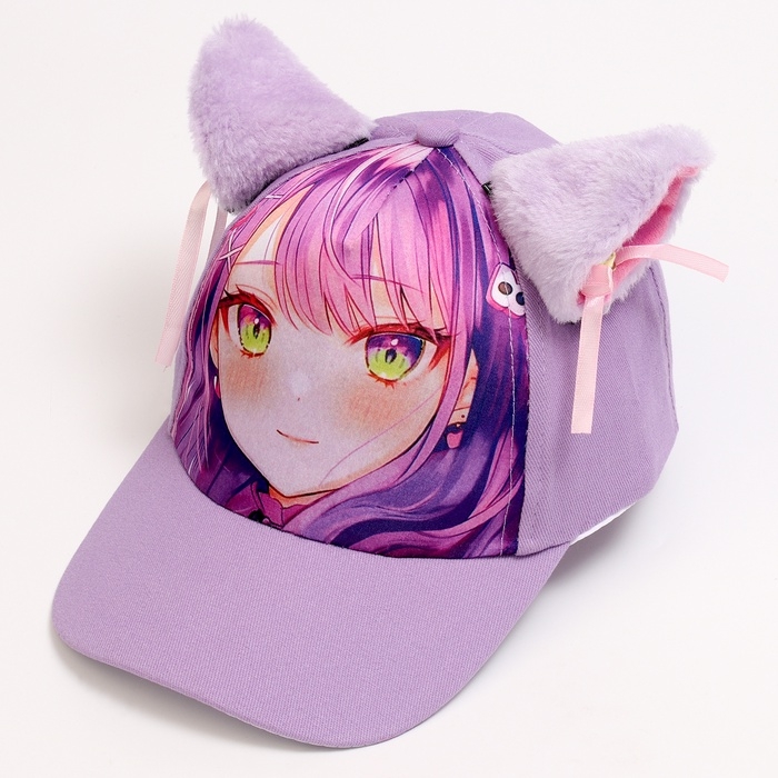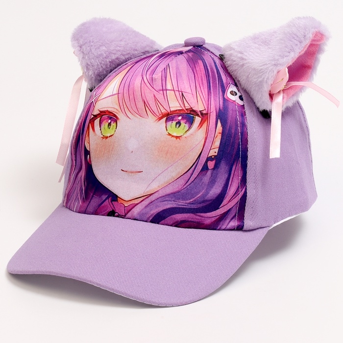 Кепка детская для девочки "Мяу"аниме, с ушками, р-р 52-54, 5-7 лет