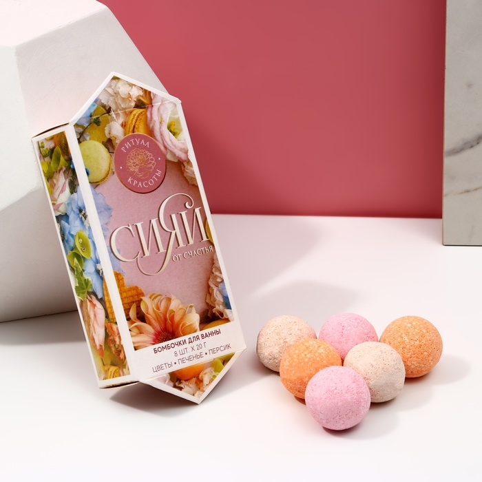 Подарочный набор косметики «Сияй от счастья!», бомбочки для ванны 8 х 20 г, ЧИСТОЕ СЧАСТЬЕ