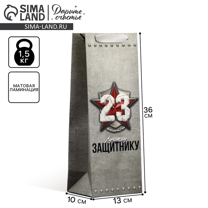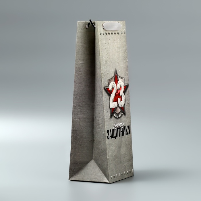 Пакет подарочный ламинированный под бутылку, упаковка, «Защитнику», 23 февраля, 13 x 35 x 10 см