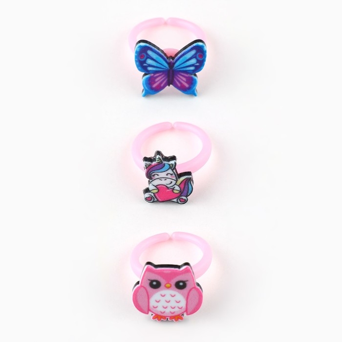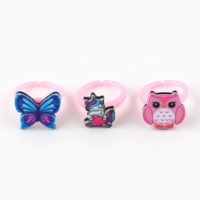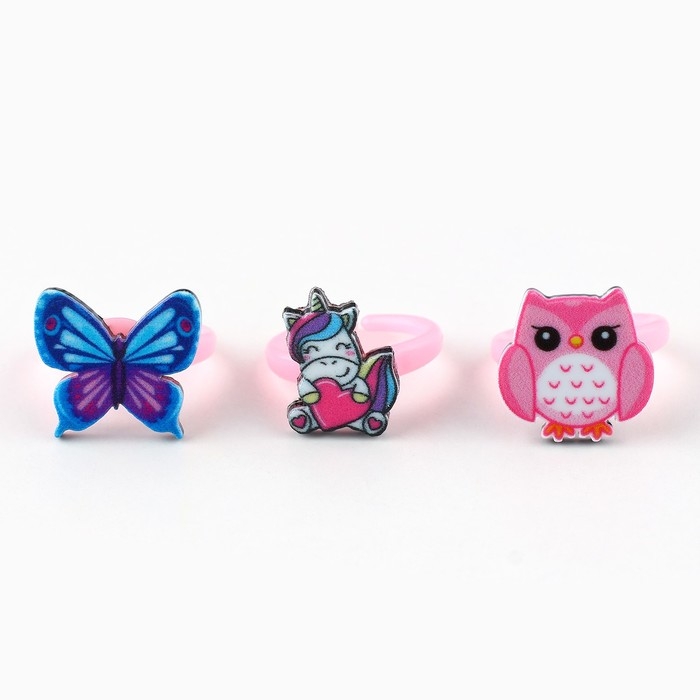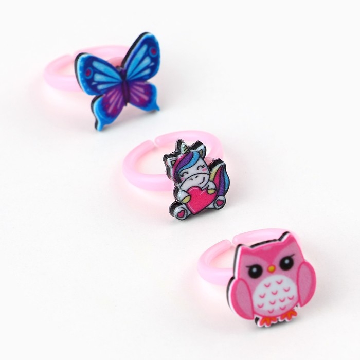 В нашем наборе детских колец есть множество различных аксессуаров, которые подойдут маленькими девочками. Кольца (бижутерия) сделаны из высококачественного гипоаллергенного бижутерного сплава и пластика, который не нанесет вреда коже ребенка. Кольца для девочек имеют форму популярных фигурок для этого возраста, от единорогов и зайчиков до сердец и радуг. Детские украшения прекрасно подойдут в качестве подарка на любой праздник и могут быть ношены на каждый день или на особые мероприятия, такие как выпускной из детского сада или день рождения.