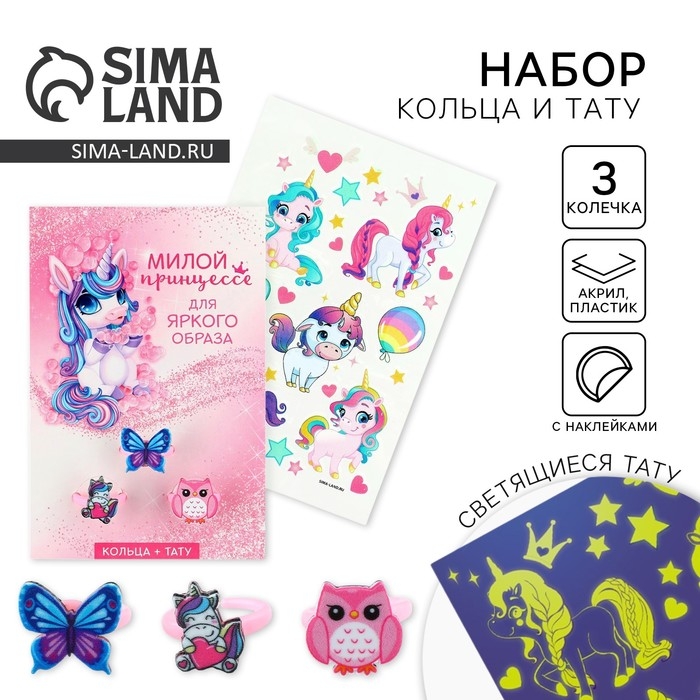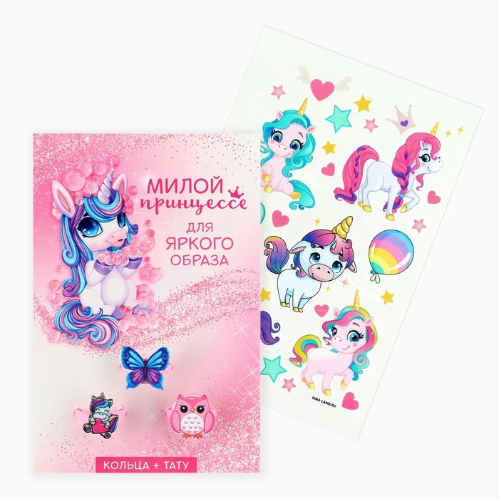 Кольцо 3 шт с тату «Милой принцессе» 8 х 12 см