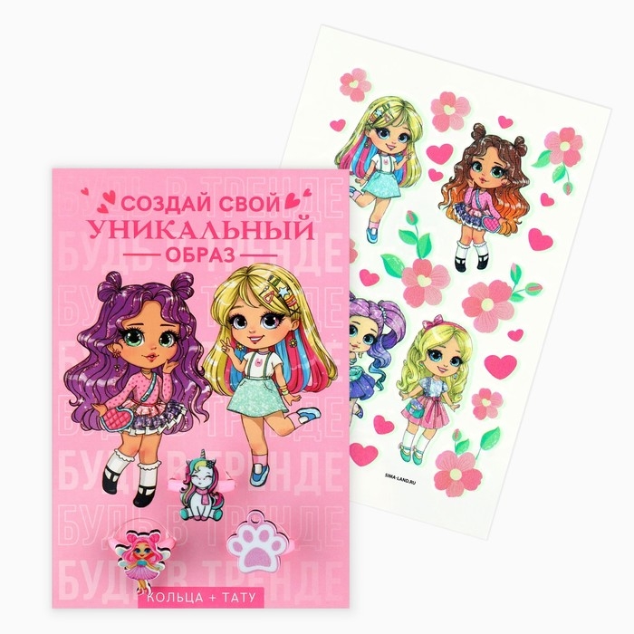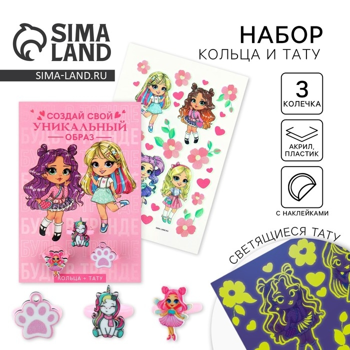 Кольцо 3 шт с тату «Уникальный образ» 8 х 12 см