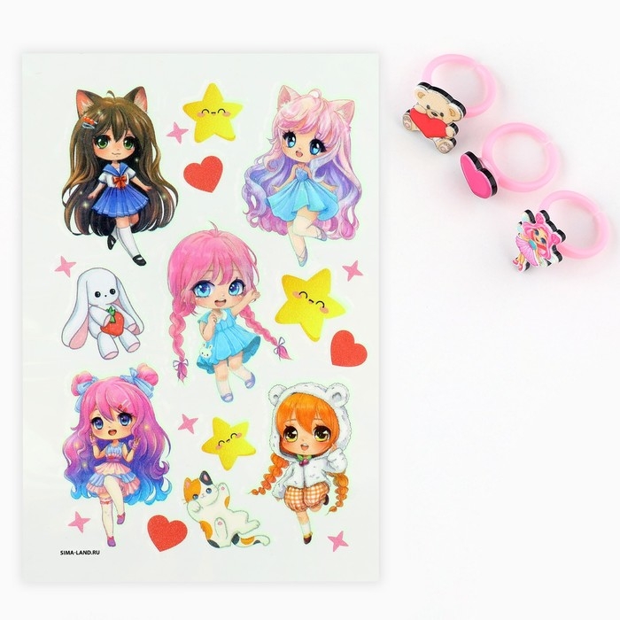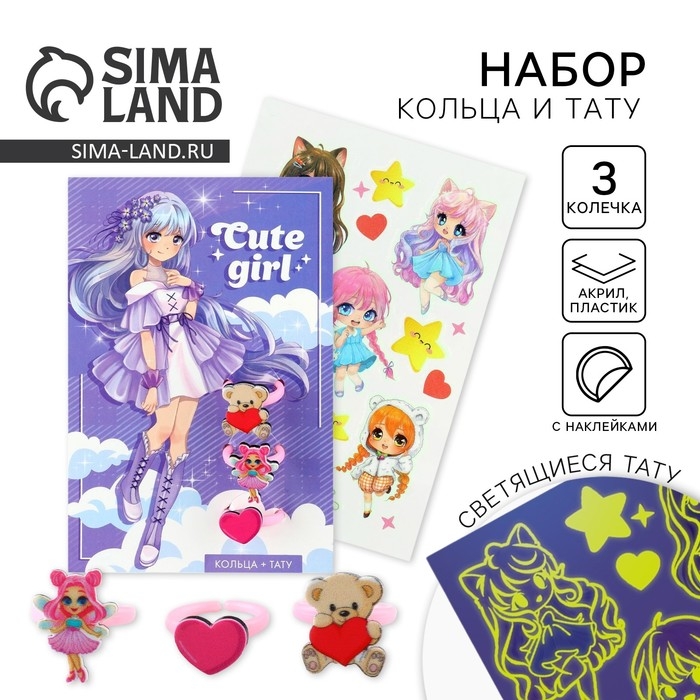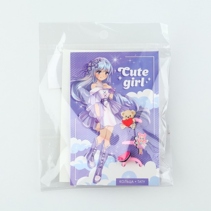 Кольцо 3 шт с тату Cute girl 8 х 12 см