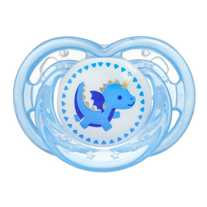 Соска - пустышка силиконовая ортодонтическая «Дино», от 0 мес., с колпачком, цвет голубой