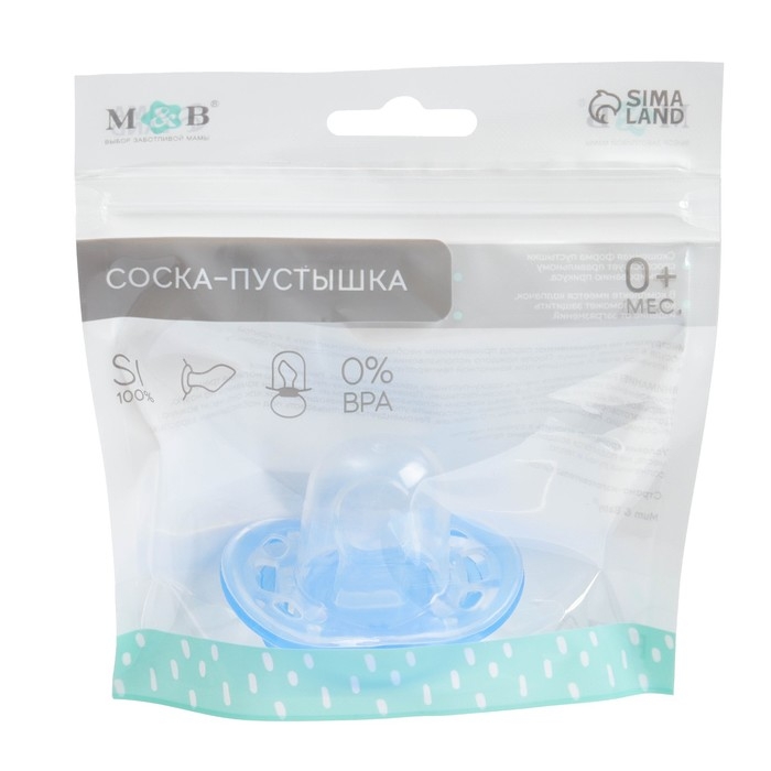 Соска - пустышка силиконовая классическая, от 6 мес., с колпачком, цвет голубой
