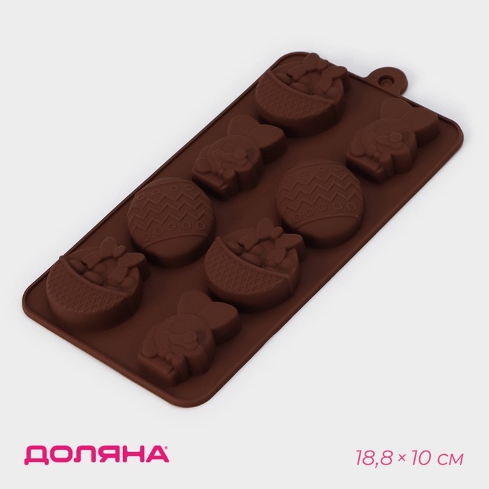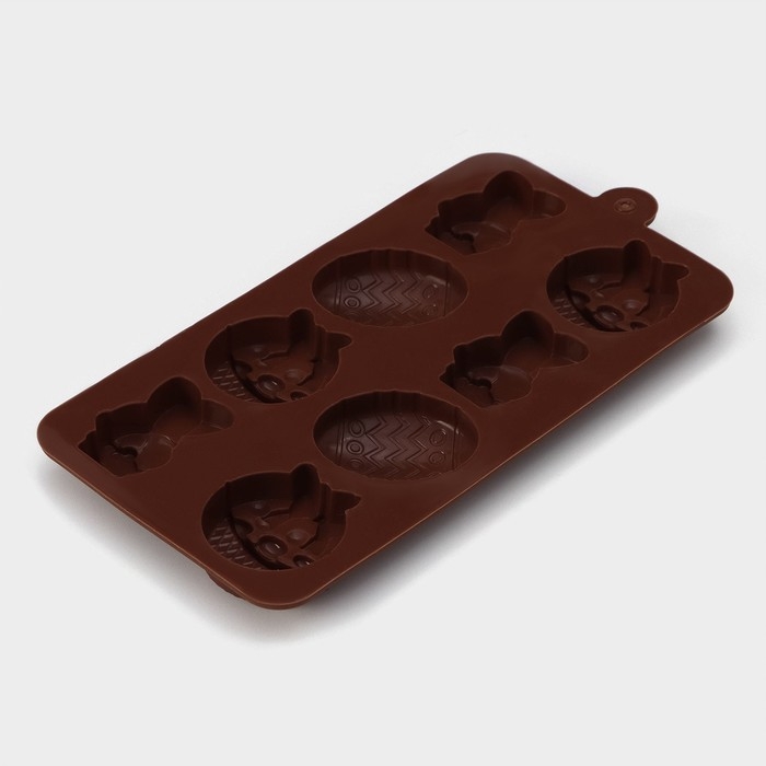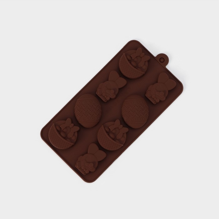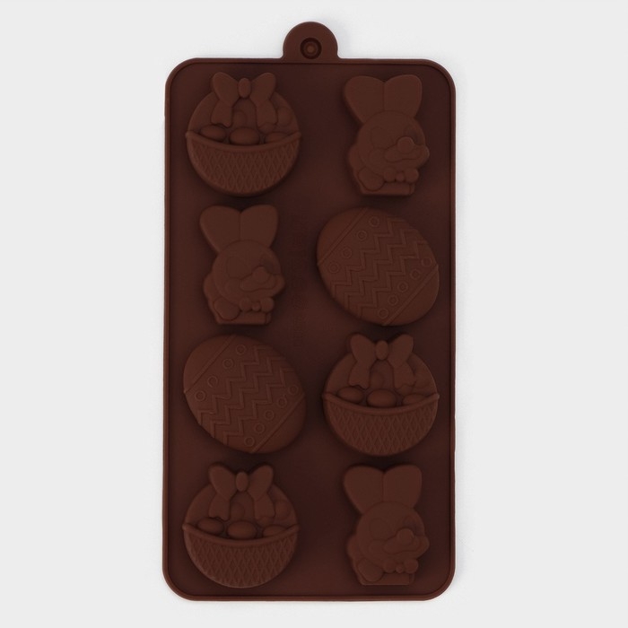Форма для шоколада Доляна «Пасха», силикон, 18,8×10×1,5 см, 8 ячеек, цвет коричневый