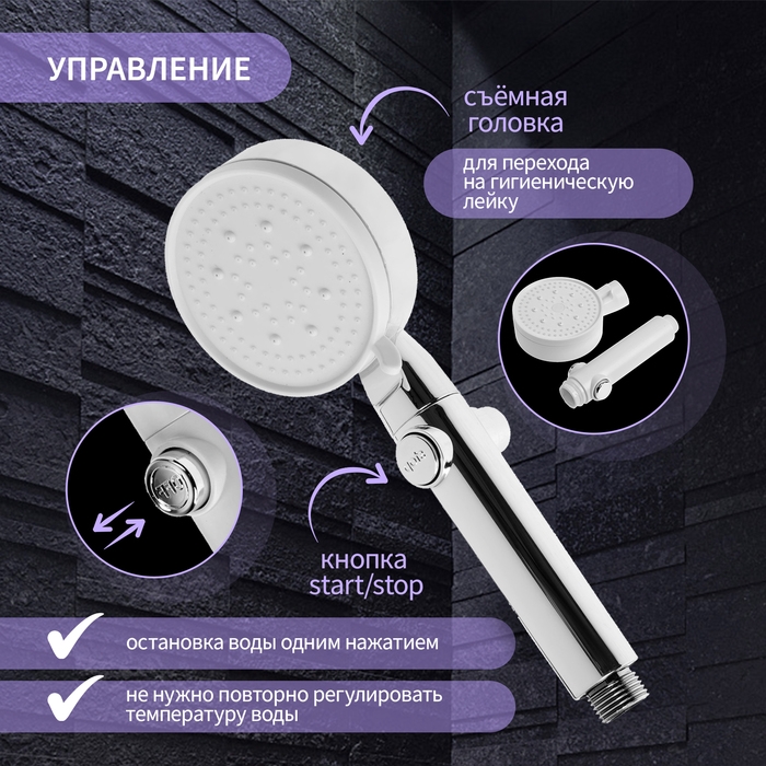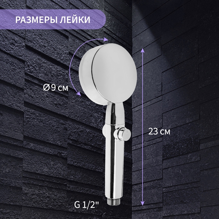 Душевая лейка ZEIN Z3191, 3 режима, пластик, кнопка стоп/старт, хром