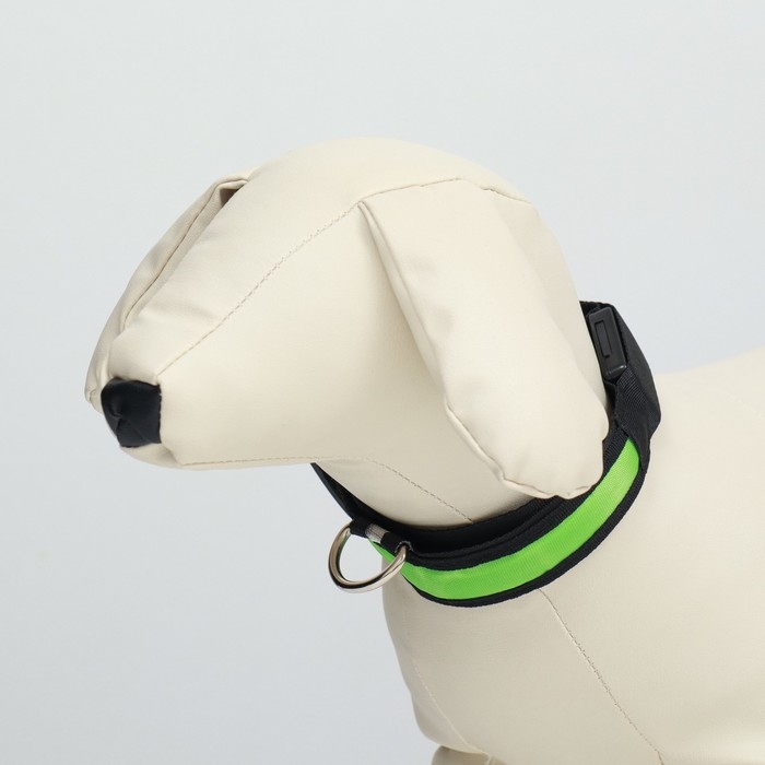 Ошейник с подсветкой Двойная полоса размер М, ОШ 40-48 х 2,5 см, 3 режима свечения зелёный