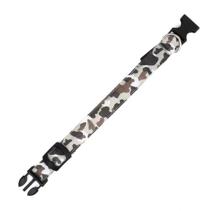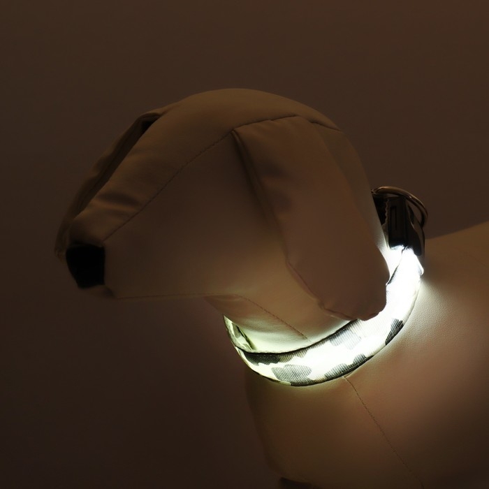Ошейник с подсветкой Милитари 3 режима свечения размер S, ОШ 22-40 х 2,5 см серый