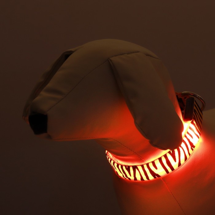 Ошейник с подсветкой Тигр 3 режима свечения размер S, ОШ 22-40 х 2,5 см оранжевый