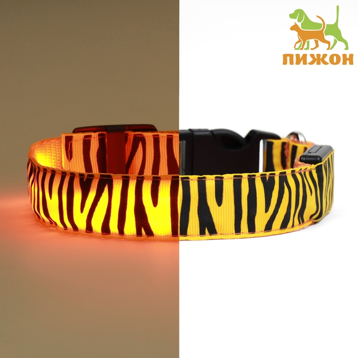 Ошейник с подсветкой Тигр 3 режима свечения размер М, ОШ 32-50 х 2,5 см оранжевый