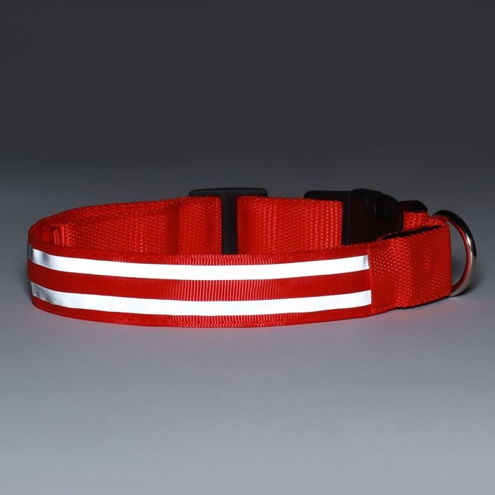 Ошейник с подсветкой "Двойная полоса", 3 режима свечения, красный