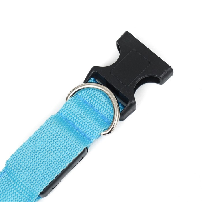Ошейник с подсветкой Двойная полоса размер M, ОШ 40-48 х 2,5 см, 3 режима свечения голубой 977224