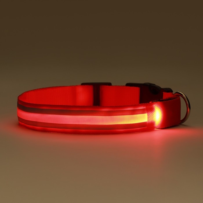 Ошейник с подсветкой "Двойная полоса", 3 режима свечения, красный