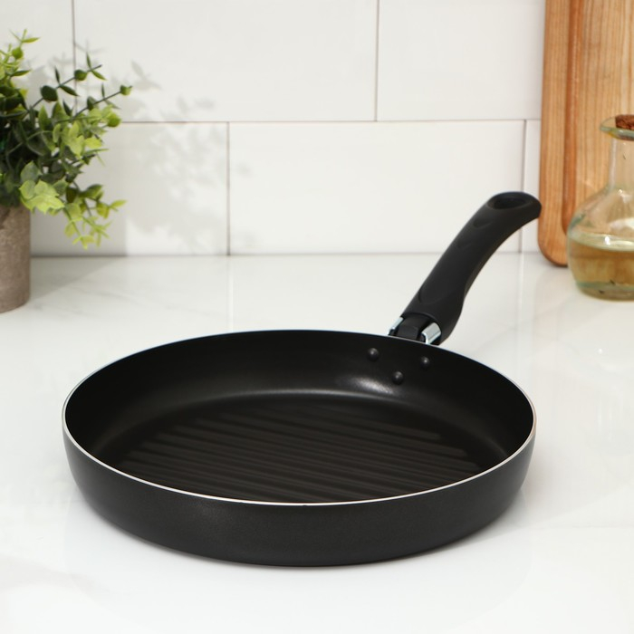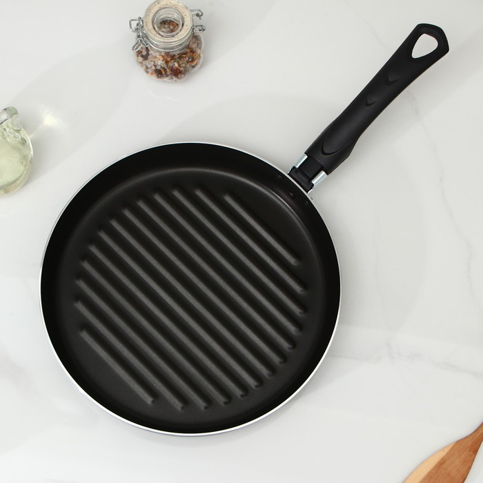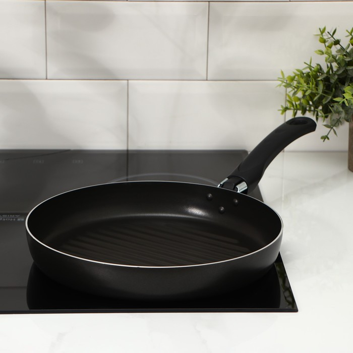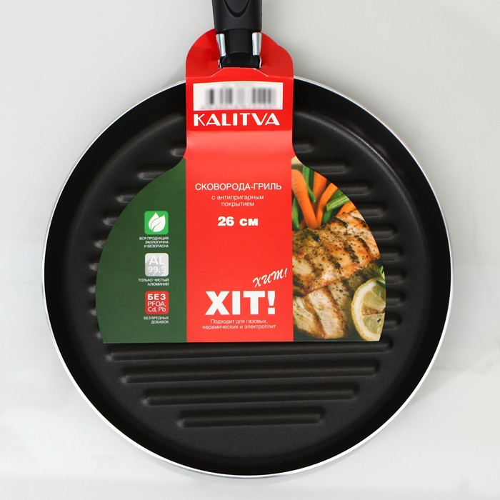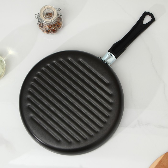 Сковорода-гриль «Хит», d=26 см, h= 8 см, антипригарное покрытие, цвет чёрный