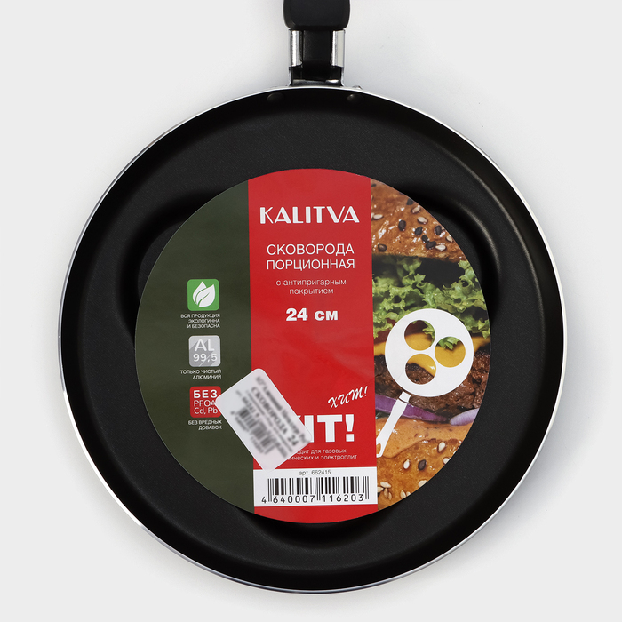 Сковорода «Хит», d=24 см, порционная, антипригарное покрытие, цвет чёрный