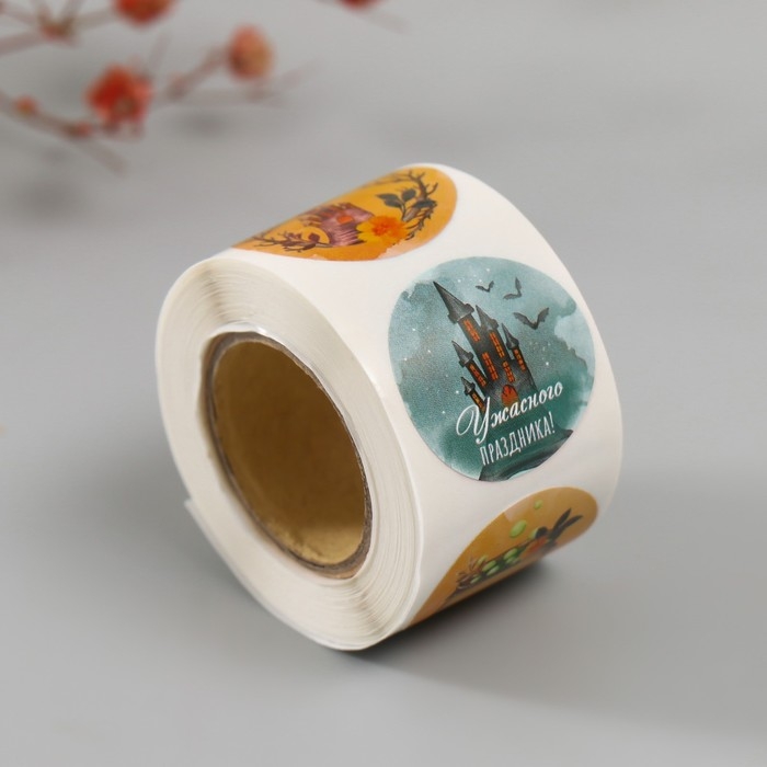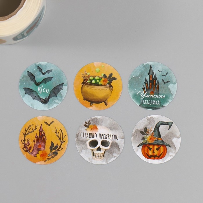Наклейка бумага "Страшно прекрасно" d=2,5 см 252 шт в рулоне