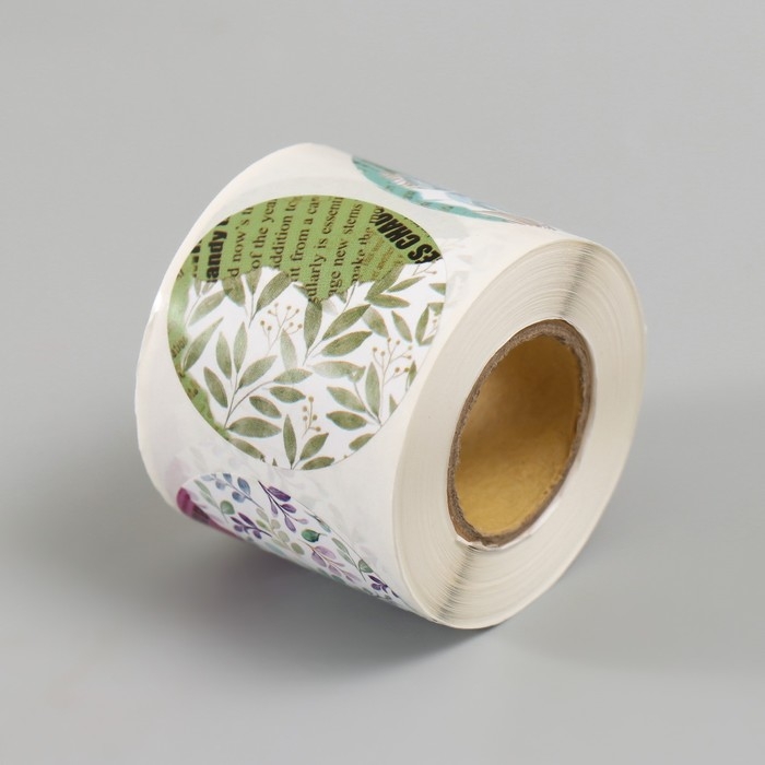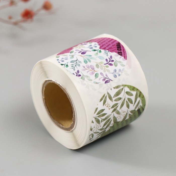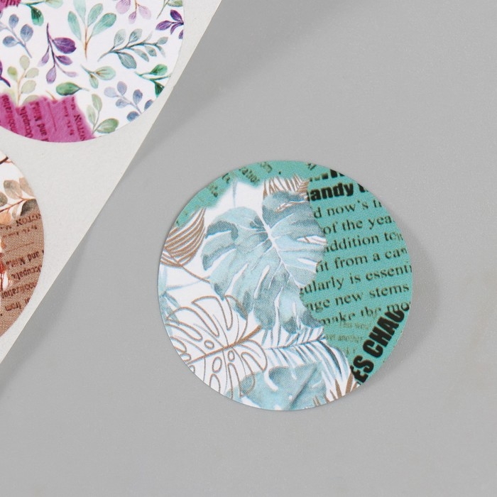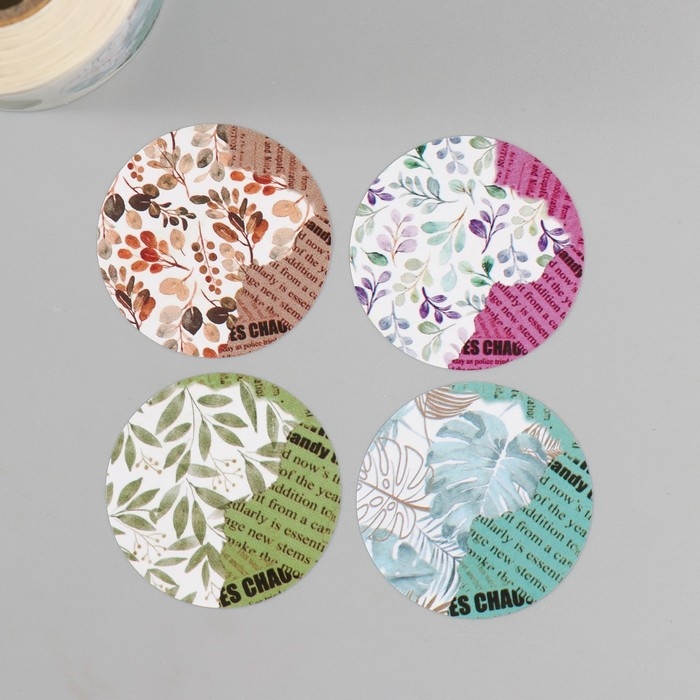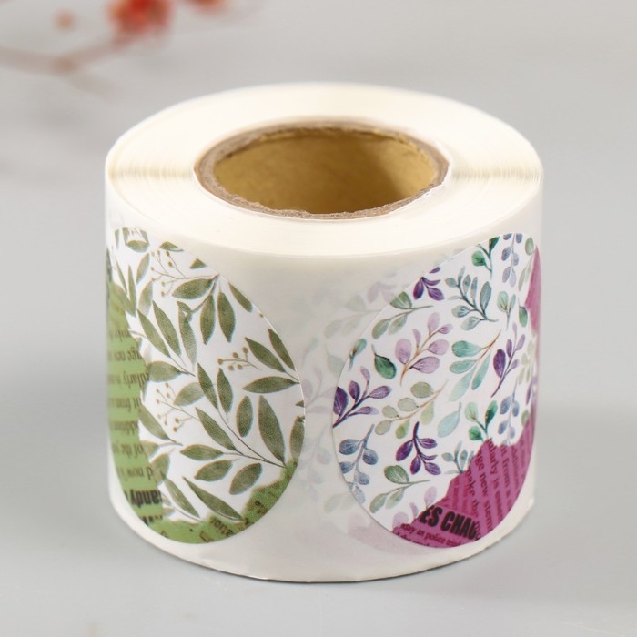 Наклейка бумага "Листья и журналы" d=3,8 см 252 шт в рулоне