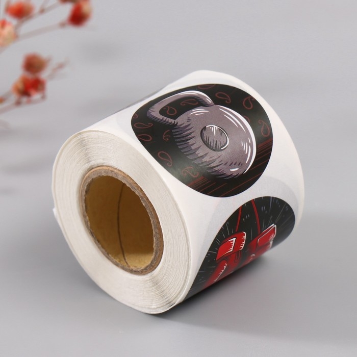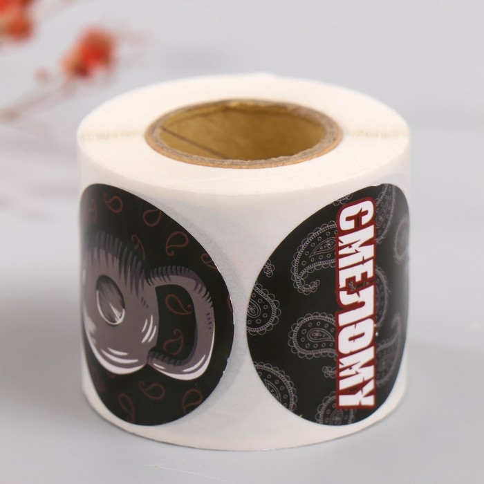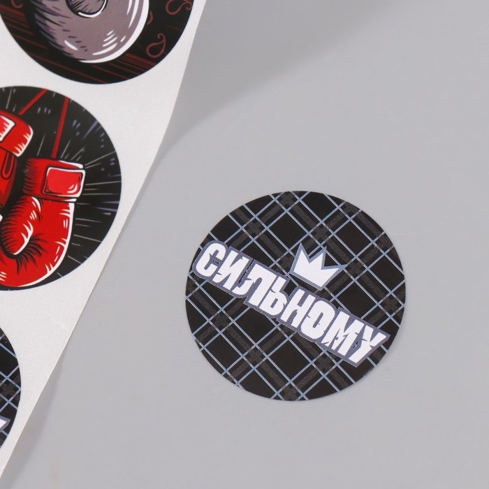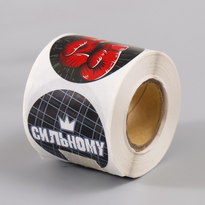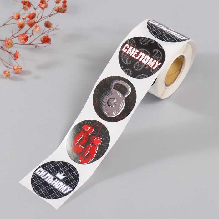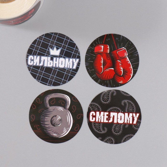 Наклейка бумага "Смелому, сильному" d=3,8 см 252 шт в рулоне