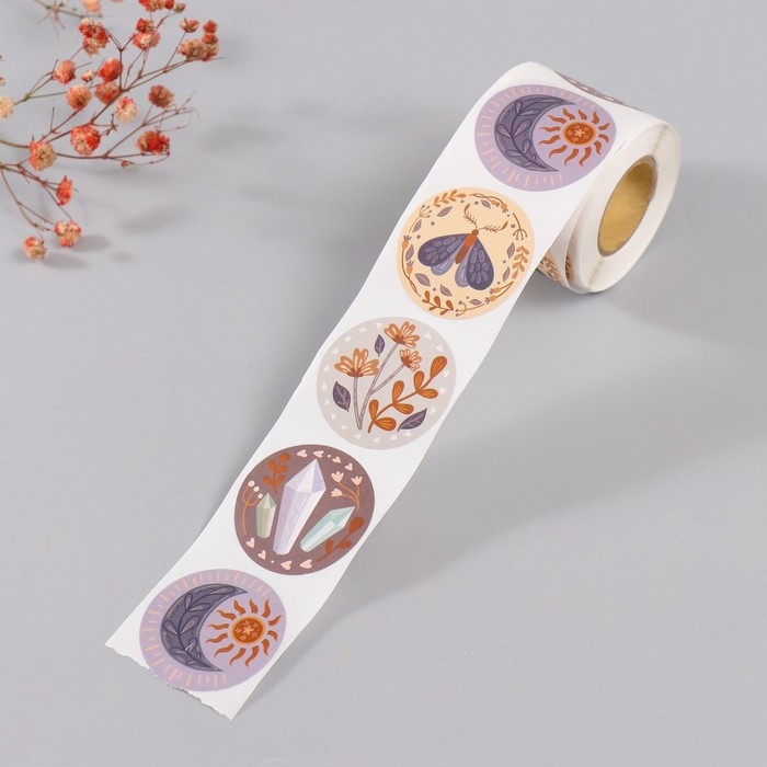 Наклейка бумага "Бохо" d=3,8 см 252 шт в рулоне