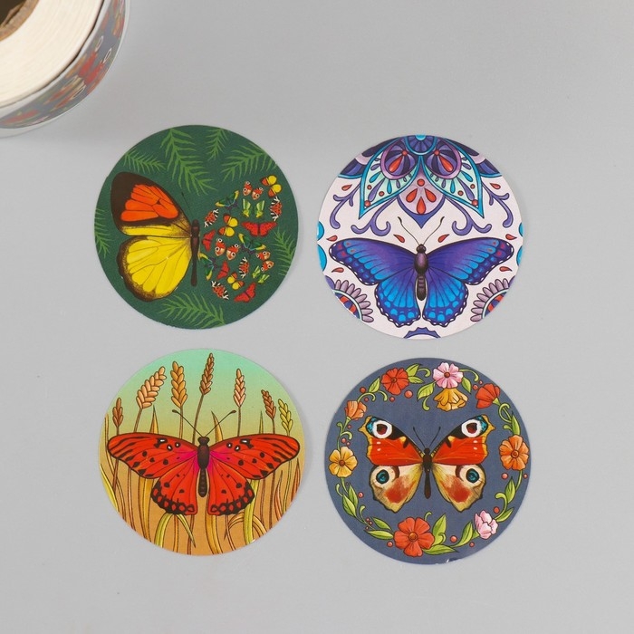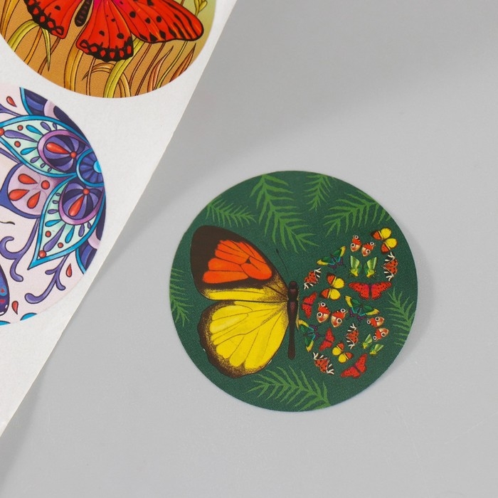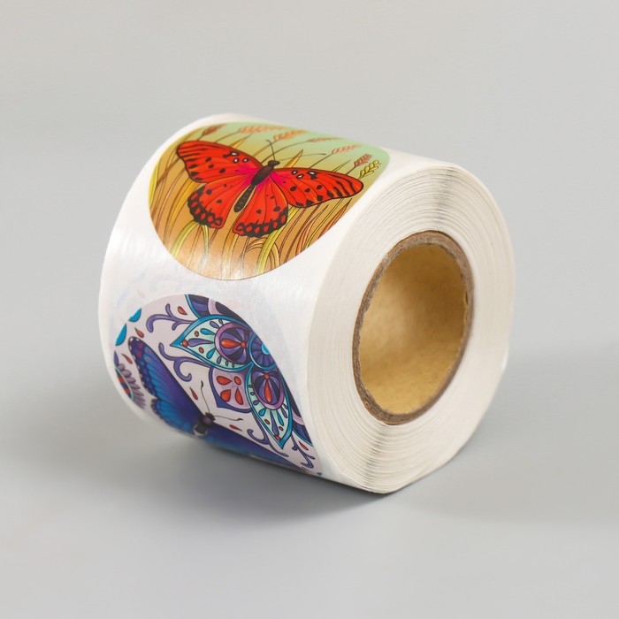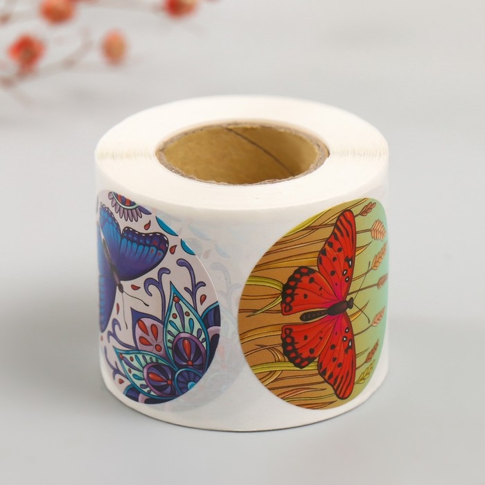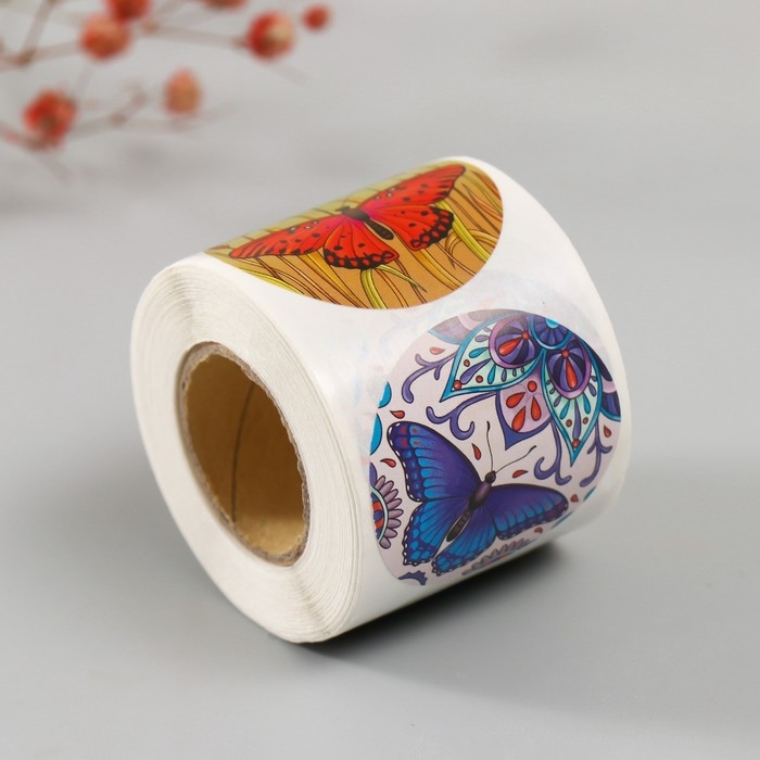 Наклейка бумага "Бабочки" d=3,8 см 252 шт в рулоне