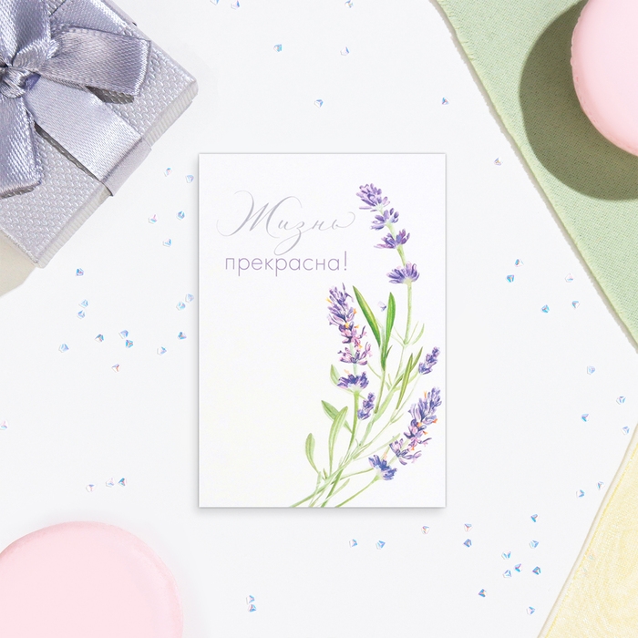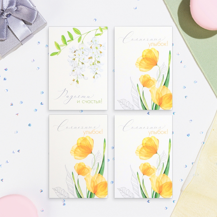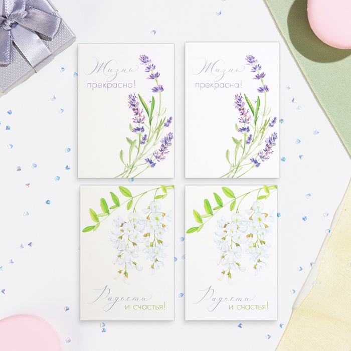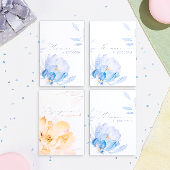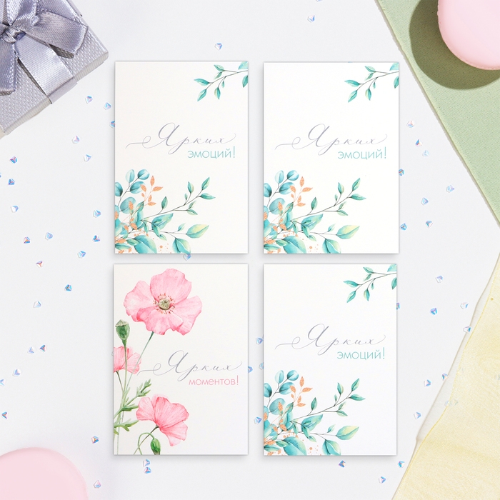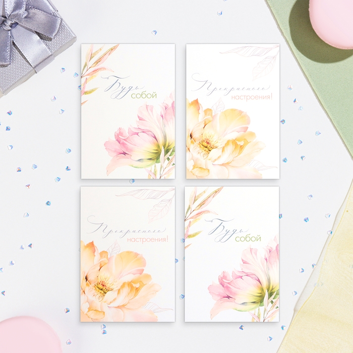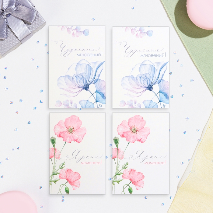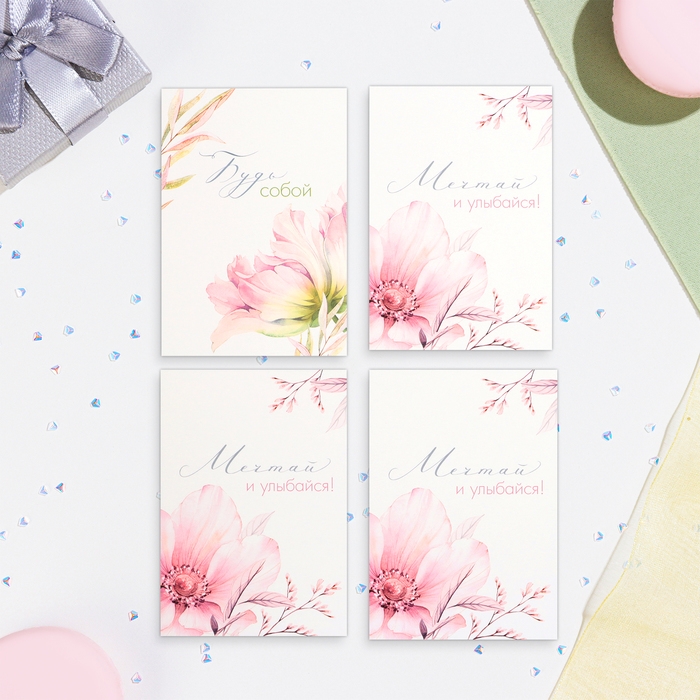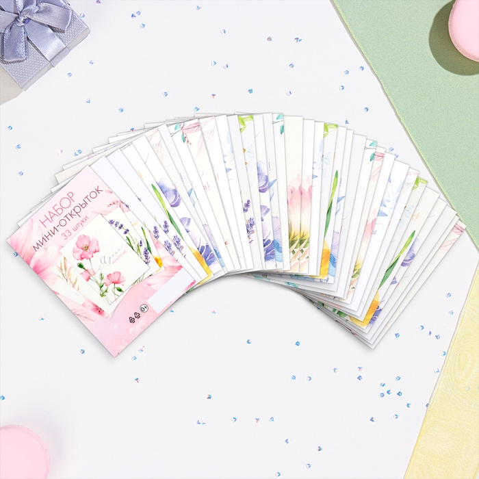 Набор мини-открыток "Цветы - 1" розовый фон, 33 штуки, 7,5х10,5 см