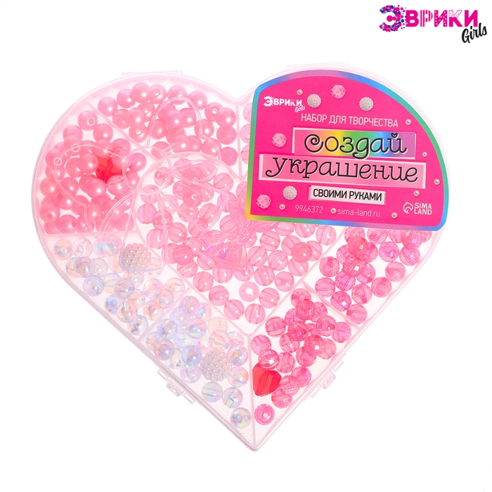 Набор для творчества «Создай украшение» — идеальное решение для занятия творчеством! В наборе вы найдёте бусины разных цветов и размеров, шармы и нитки. Все элементы находятся в прочной пластиковой коробочке в форме сердца.