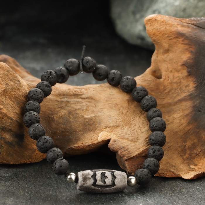 Бусина дзи - мощный тибетский амулет, защищает и приносит удачу. Лавовый камень помогает осуществить задуманное.