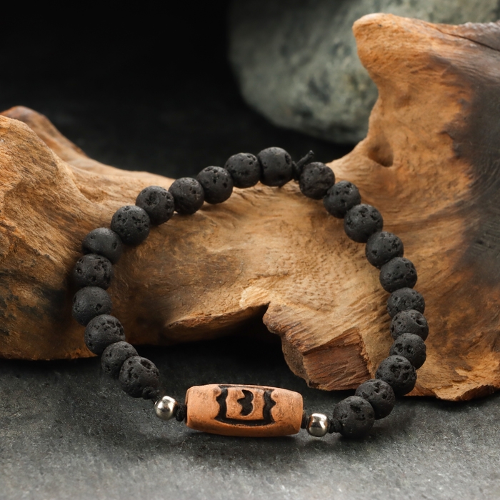 Браслет из лавы с бусиной Дзи «Гаруда» №3
