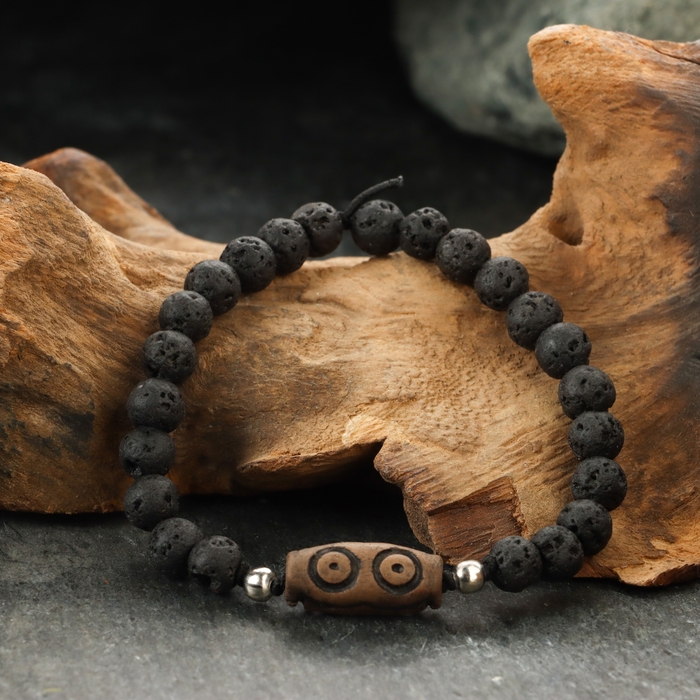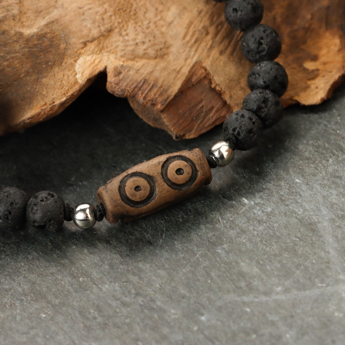Бусина дзи - мощный тибетский амулет, защищает и приносит удачу. Лавовый камень помогает осуществить задуманное.
