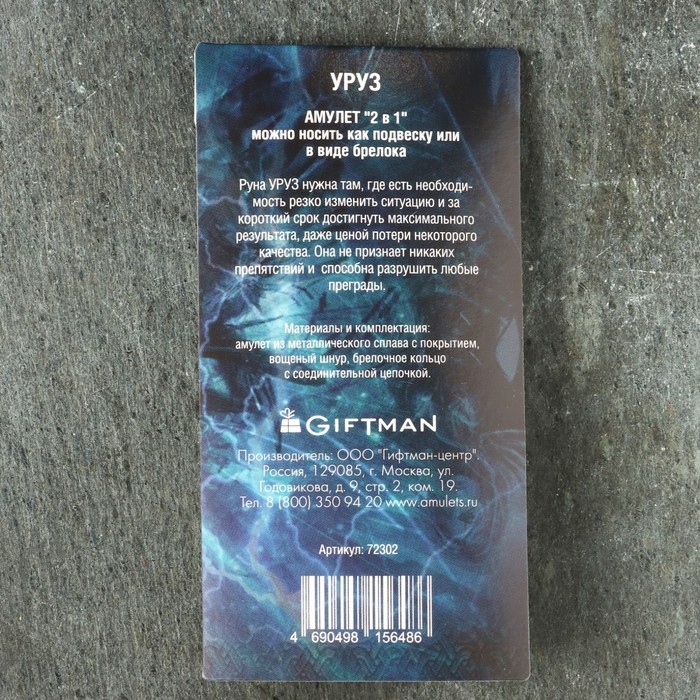 Амулет "Скандинавские Руны", руна УРУЗ 21х29мм, металлический
