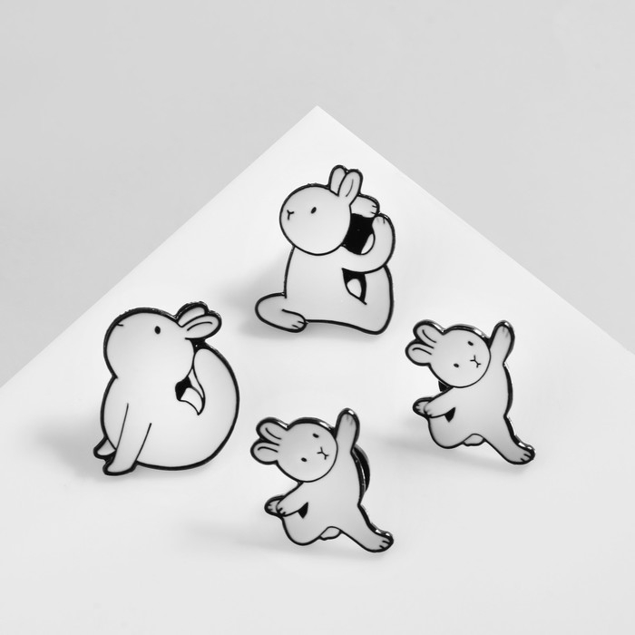 Набор значков (4 шт.) «Зайчики» йога, цвет белый в чёрном металле