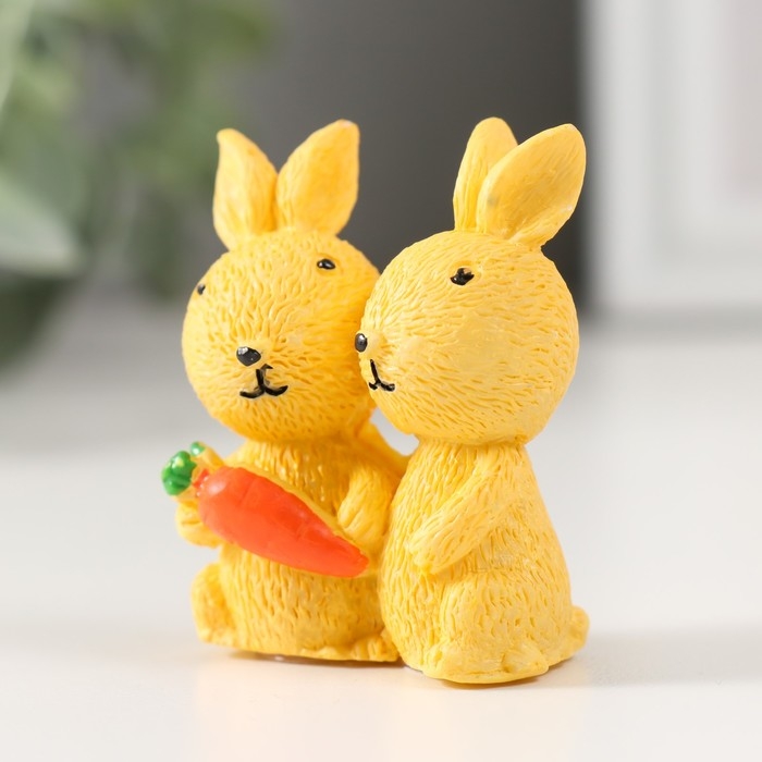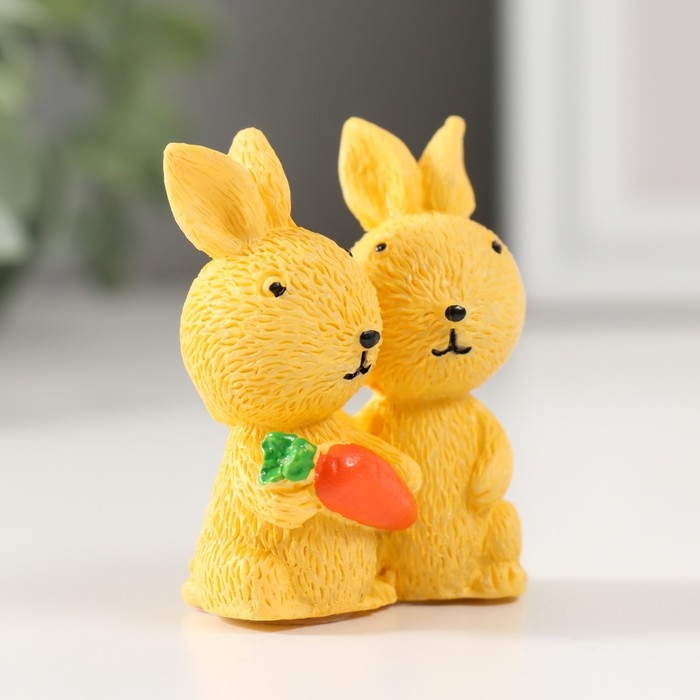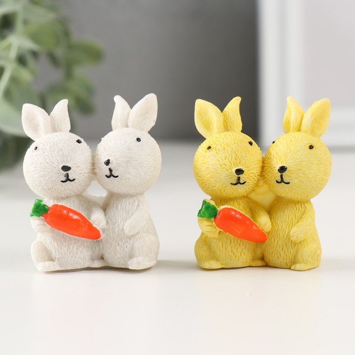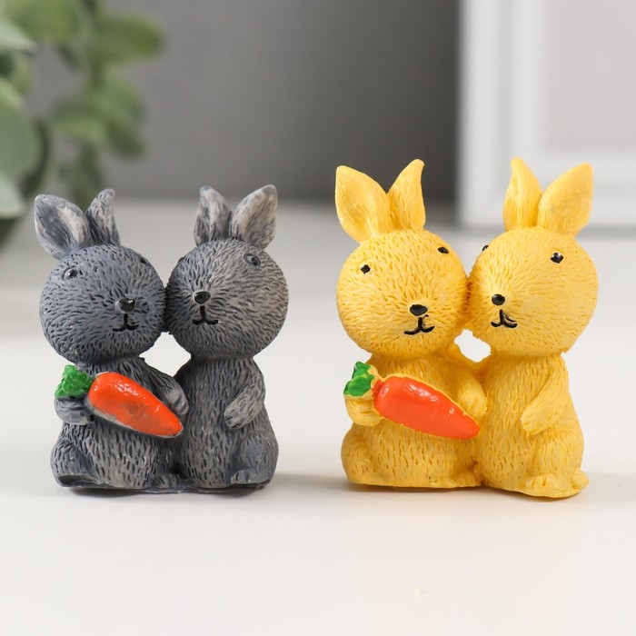 Сувенир полистоун "Пара кроликов с морковкой" МИКС 2х3,5х5 см
