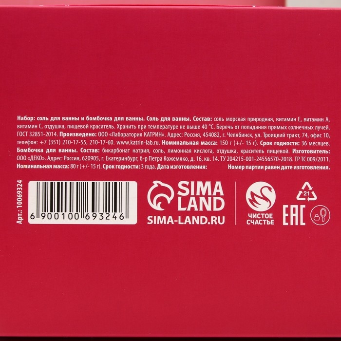 Подарочный набор косметики «Уведомление», соль для ванны 150 г и бомбочка для ванны 80 г, ЧИСТОЕ СЧАСТЬЕ