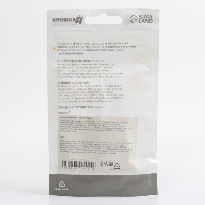 Набор блокираторов для дверей и ящиков, универсальные, 17 см, 2 шт., цвет белый/прозр, Крошка Я
