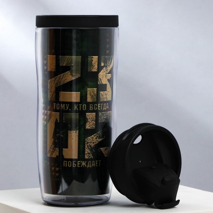 Термостакан со вставкой «Тому, кто всегда побеждает 23 февраля», 350 мл